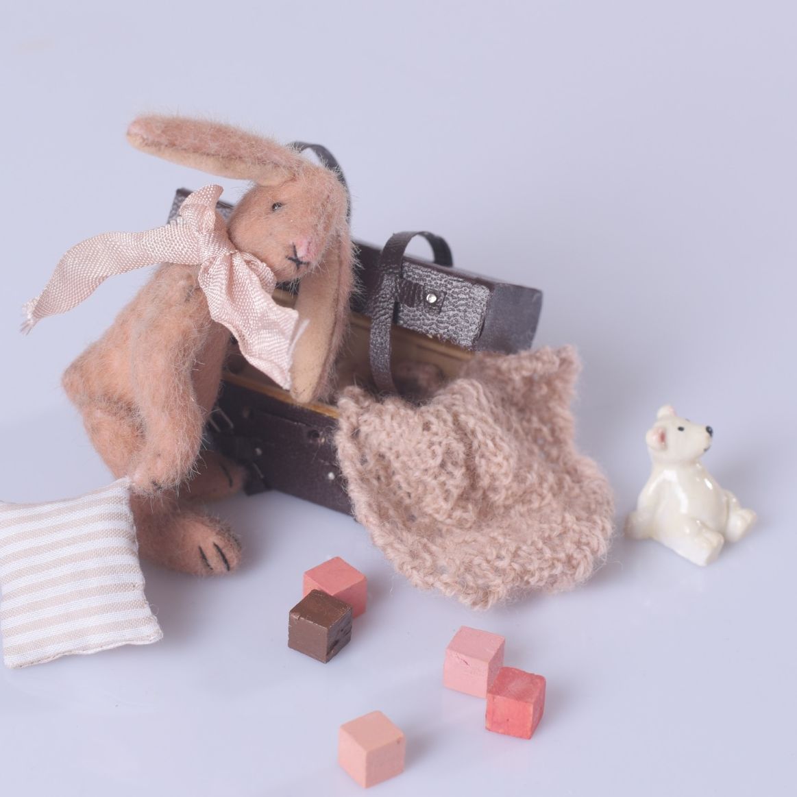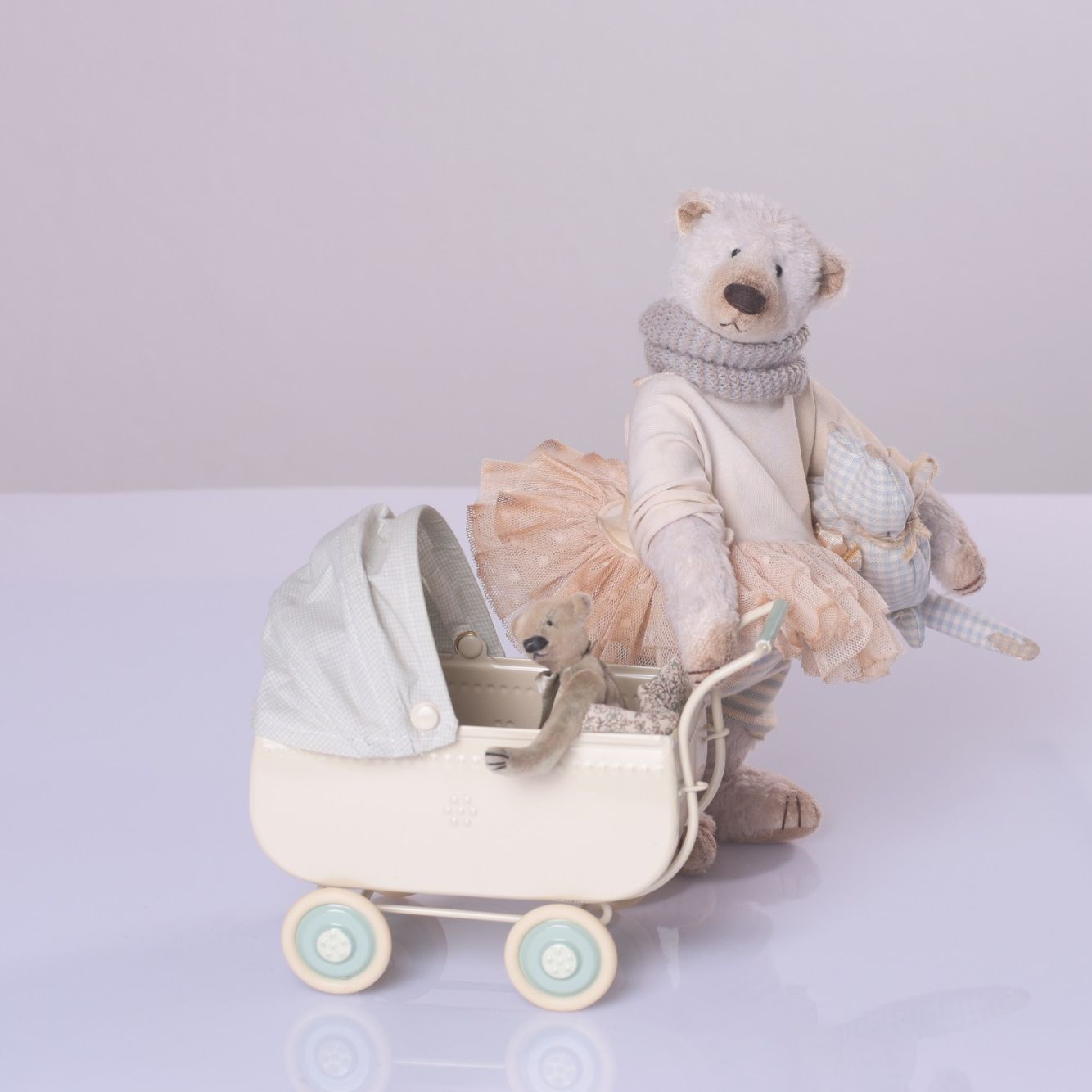 Jeder Bär und jede Puppe sind individuell entworfen und handgefertigt, ohne Serienproduktion.